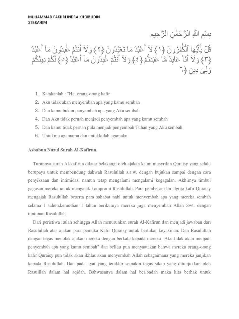 Surat al kafirun beserta artinya tafsir dan asbabun nuzul foto.